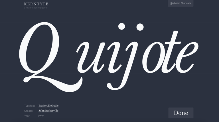 This is a game that helps us understand the importance of the proper distance between the letters in a word (kerning). This train our eyes so we stop struggling creating types, headlines and logos!